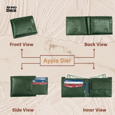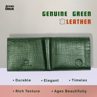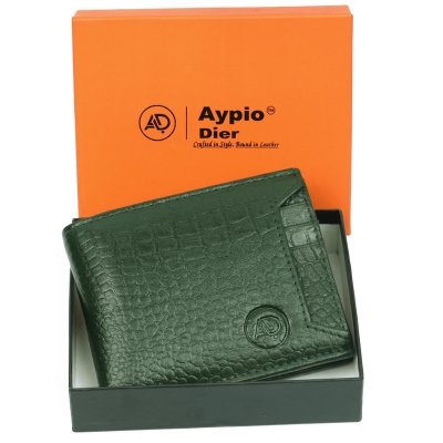 Make a bold impression with the AYPIO DIER Crocodile Print Green Leather Wallet for Men, crafted for those who appreciate texture and luxury. This genuine leather wallet for men features a premium crocodile pattern finish, elevating it into a true designer wallet for men.