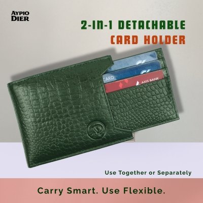 AYPIO DIER Crocodile Print Green Leather Wallet For Men | Genuine Leather RFID Wallet | Luxury Designer Mens Wallet | Slim Card Holder Wallet India
